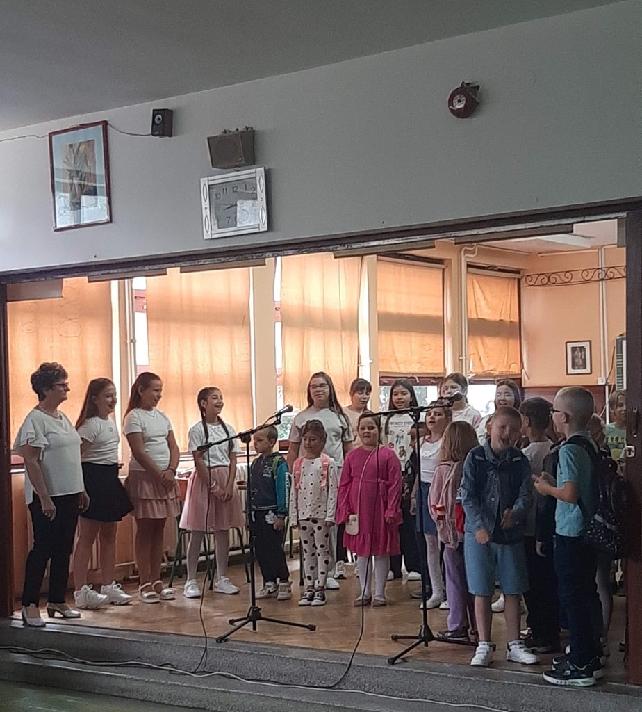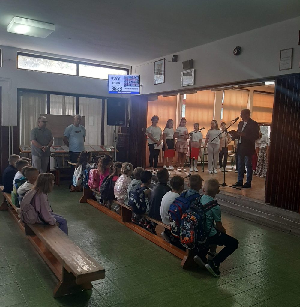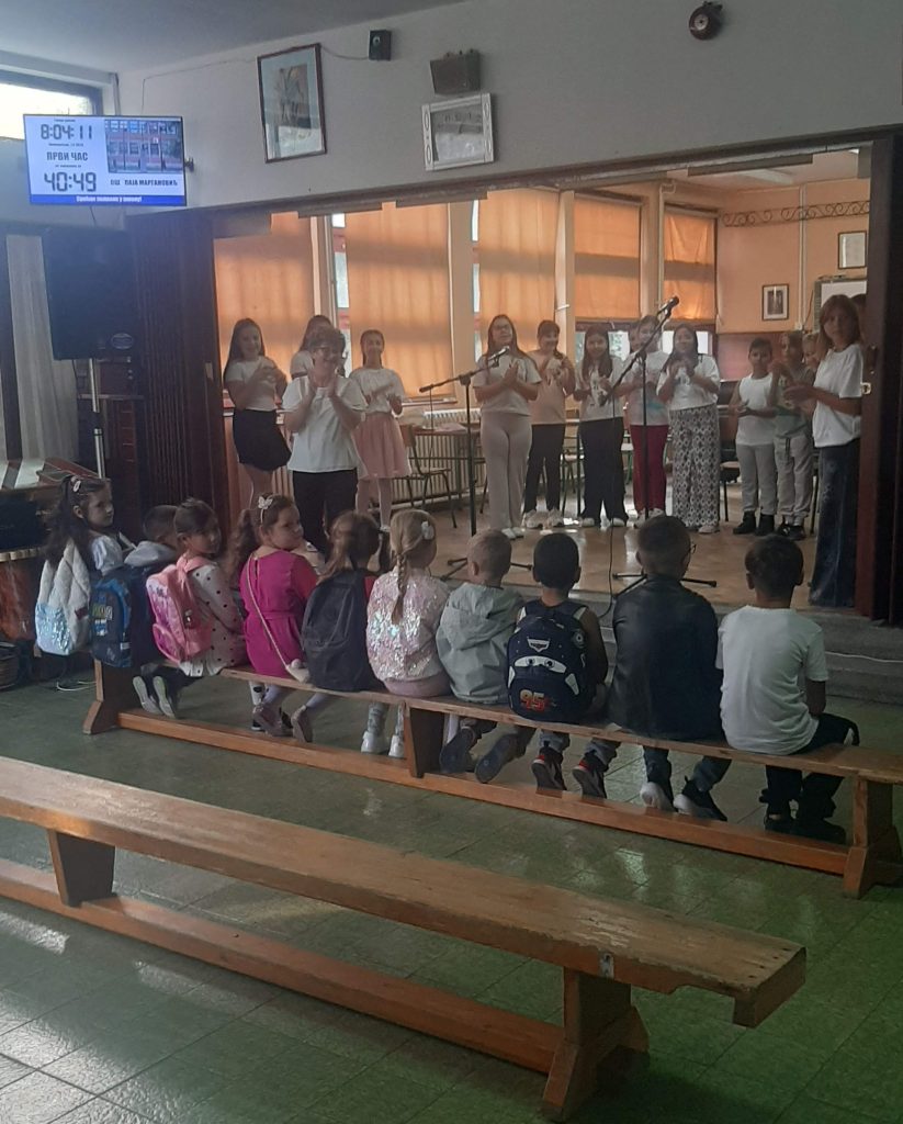 У холу наше школе ученици бившег четвртог, а сада већ петог разреда су са својом учитељицом Светланом Резач припремили мали програм којим су поздравили осамнаесторо нових дечака и девојчица, наших најмлађих школских другара.