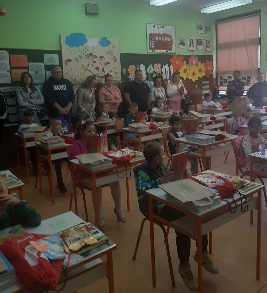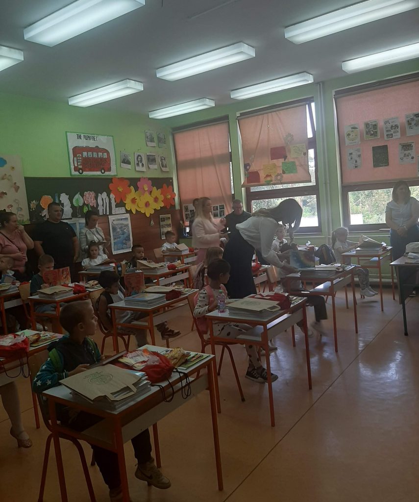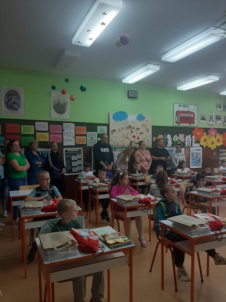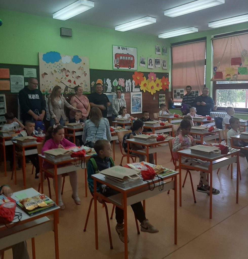 У холу наше школе ученици бившег четвртог, а сада већ петог разреда су са својом учитељицом Светланом Резач припремили мали програм којим су поздравили осамнаесторо нових дечака и девојчица, наших најмлађих школских другара.