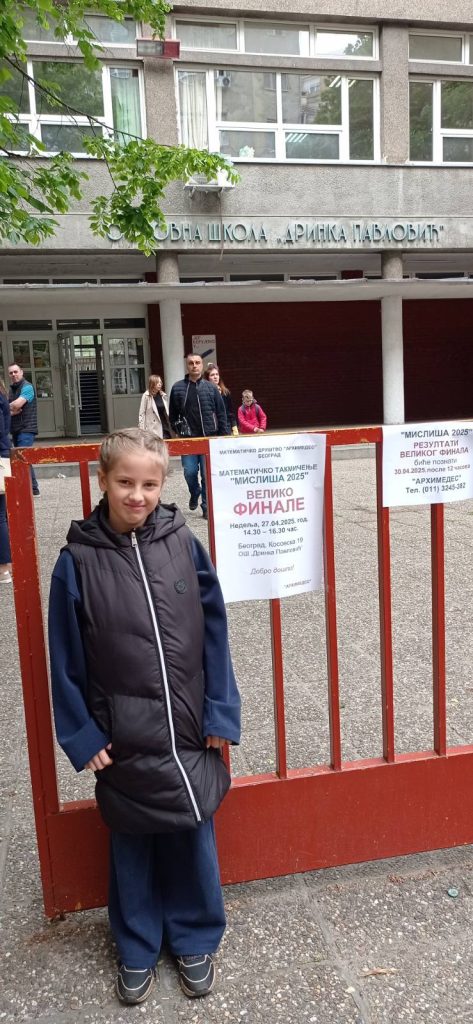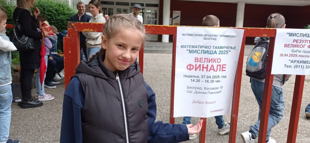 Математичко друштво “Архимедес“ из Београда организовало Велико републичко финале “МИСЛИША 2025“ 27. априла 2025. године у Београду у ОШ “Даринка Павлавић“. Нашу школу представљала је ученица првог разреда Уна Филиповић.